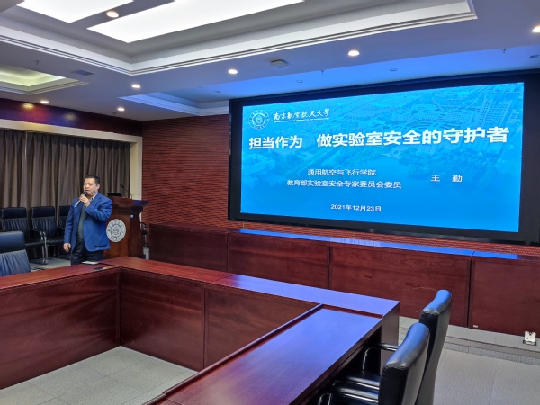 2021年12月23日下午,英国365集团公司院长王勤在江宁校区一号楼10527会议室讲授了题为“担当作为 做实验室安全的守护者”的专题党课,此次党课由飞行系支部书记陈大伟主持,飞行系党支部全体党员参加了此次党课。