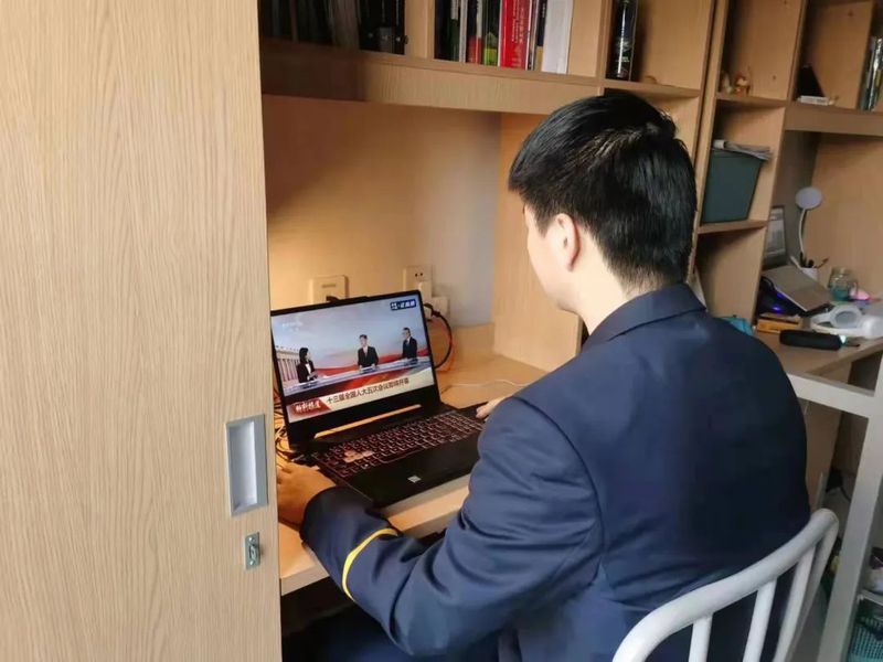 我院各团支部、广大青年学子热切关注全国两会的召开,通过电视、网络、手机等渠道观看直播,学习两会精神。