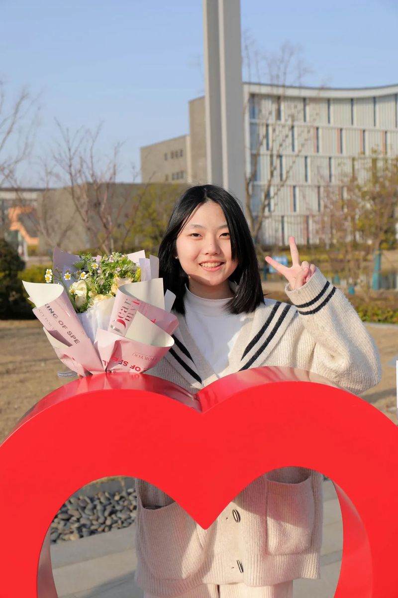 “淡雅又不失仪式感的花束,满满一袋的小零食,直接将节日氛围拉满,真的很惊喜,也很感动,学院把每个女生都宠成小公主啦!”收到学院团委准备的“女生节”惊喜后,祝仪琳同学开心地说到。