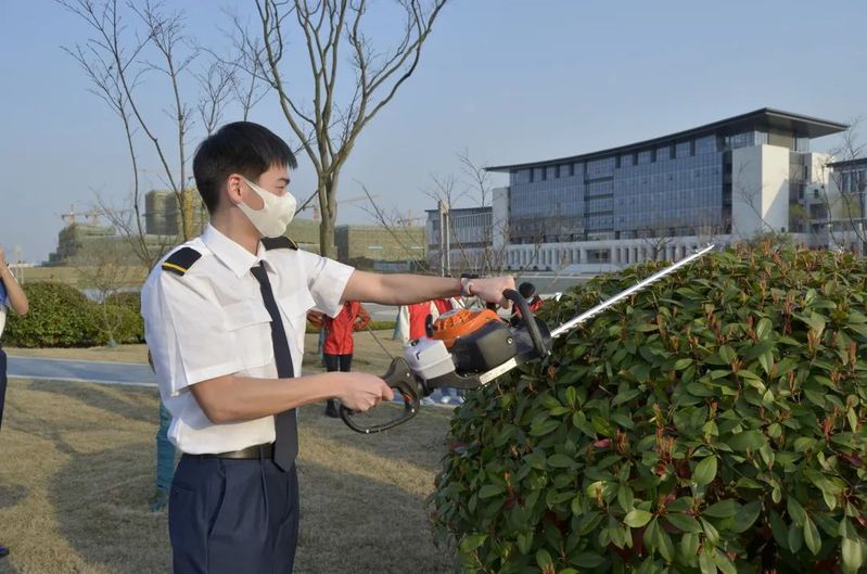 天目湖校区资深园艺师为同学们讲解了修剪工具的使用方法,并进行示范操作。同学们纷纷拿起工具,在园艺师的指导下对植物进行修剪。劳动过程中,大家的额角冒出了汗珠,但欣悦的成就感浮现在每个人的脸上。