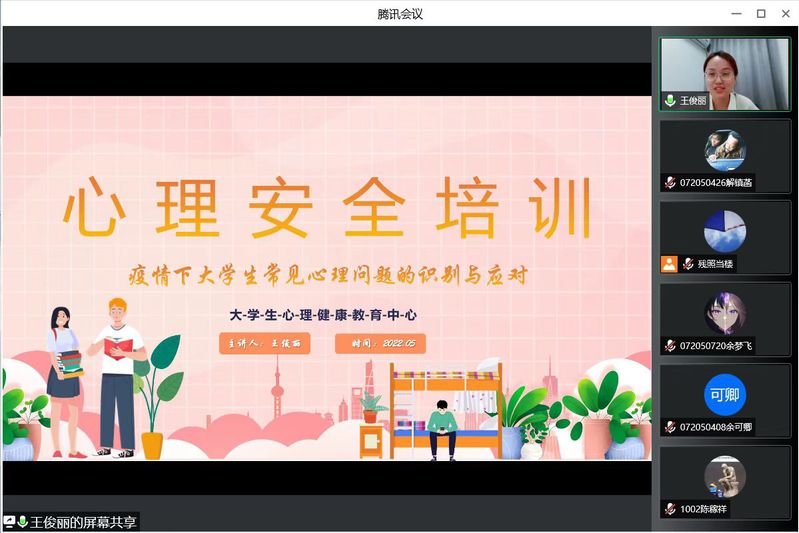 王俊丽结合我院学生特点,分析了疫情防控形势下大学生常见心理问题。她详细讲解了如何提高大学生心理问题的识别与评估能力,并对如何开展调节与干预工作进行了指导。她希望大家积极发挥工作主动性,对班级中的特定学生群体做好必要的关注和引导。