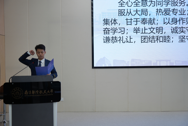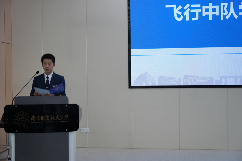 随后,飞行大队副大队长林冠兆带领现场全体学生干部进行宣誓。