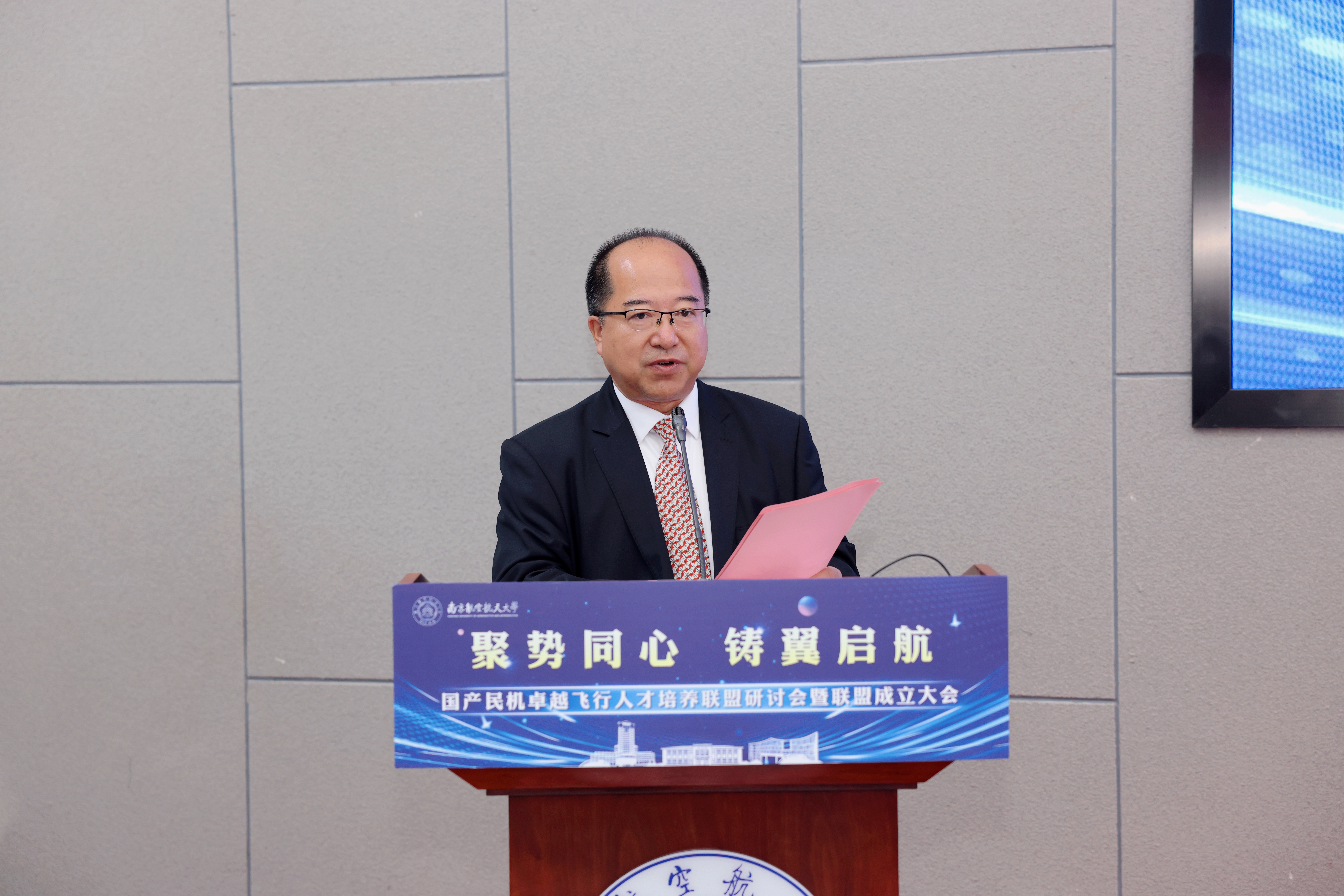 AG600总师、我校英国365集团公司院长黄领才宣读《国产民机卓越飞行人才培养联盟章程(草案)》,会议审议并通过了这一章程。该章程聚焦人才培养标准制定、资源整合与行业联动三大任务,为联盟的规范化运行提供了根本遵循。