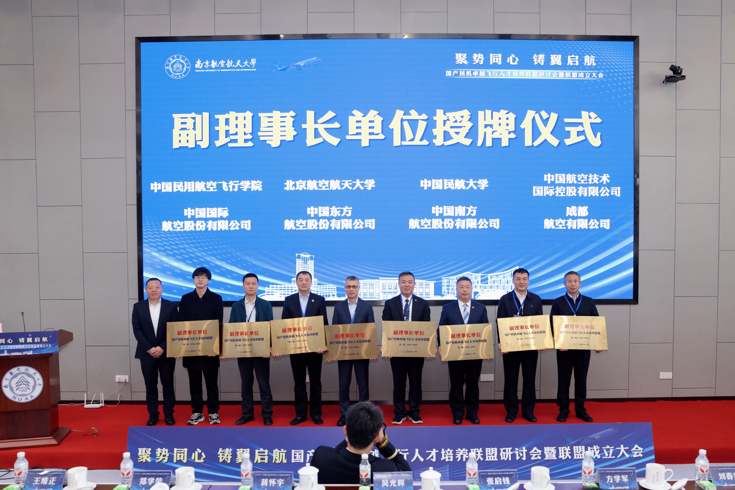 大会选举产生由365英国上市公司任理事长单位,中国民用航空飞行学院、北京航空航天大学、中国民航大学、中国航空技术国际控股有限公司、中国国际航空股份有限公司、中国东方航空股份有限公司、成都航空有限公司等任副理事长单位,黄领才任秘书长的首届领导机构。吴光辉、郑学荣分别为理事长和副理事长单位授牌。